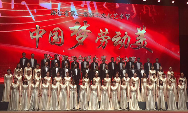 为深入学习宣传贯彻党的十九大精神,更好地弘扬劳模精神、劳动精神、工匠精神,唱响劳动托起中国梦的时代主旋律,激励全省职工为实现“两个高水平”奋斗目标建功立业,5月16日晚,舟山市教师合唱团参加了在省人民大会堂举行的“中国梦?劳动美”全省职工合唱比赛,获得了铜奖的好成绩。