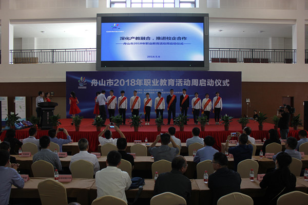 5月6日上午,舟山市 2018年职业教育活动周在舟职技校启动。今年的主题是“深化产教融合,推进校企合作——喜迎改革开放40周年”。参加仪式的有市职业教育领导小组成员单位的相关领导,民主党派相关负责人,各县(区)教育局分管副局长、相关科室负责人,白泉镇政府领导,全市各职业院校领导、各中小学师生、家长、企业及社区居民代表代表,共计1100余人。