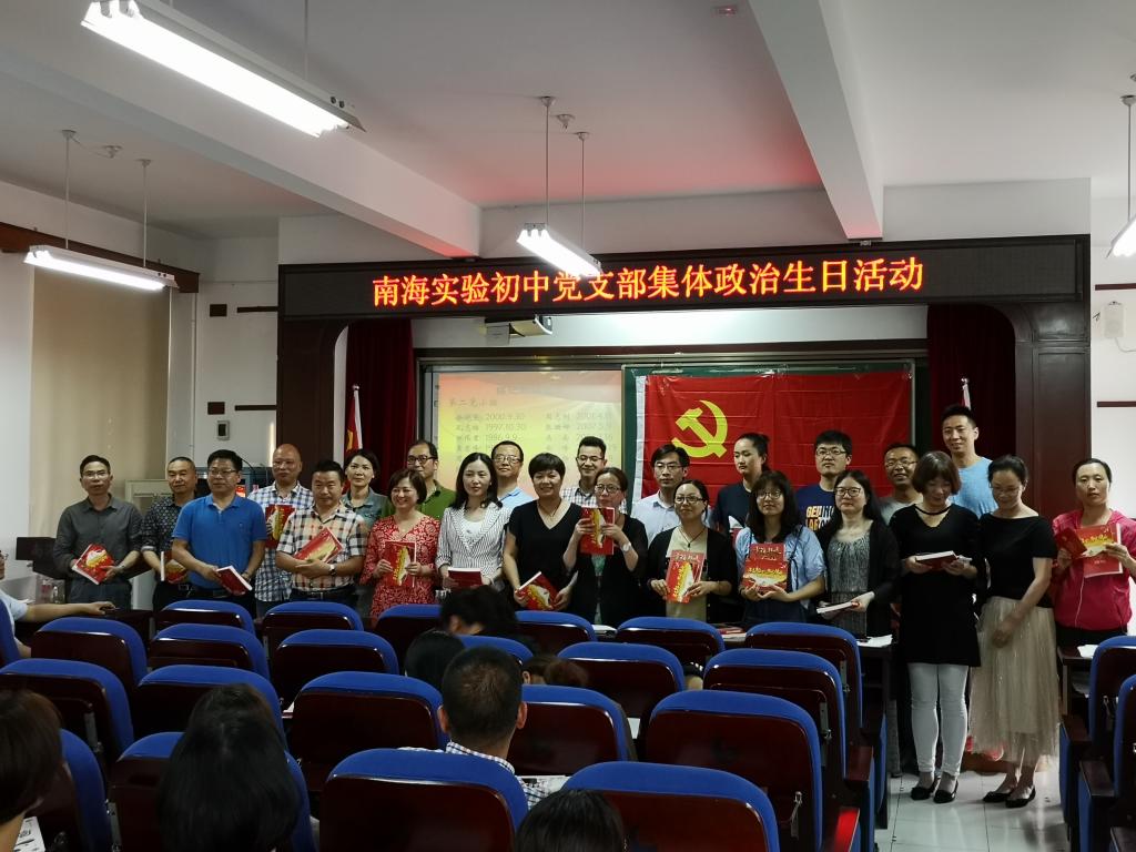 “朱海瑛同志,1989年6月1日,你光荣地加入了中国共产党,今天是你的入党纪念日,支部向你表示热烈的祝贺,希望你在今后的工作中,时刻牢记党的宗旨,永葆共产党员先进性。”这是5月25日,在南海实验初中5月党员政治生日主题活动的这一天,初中党支部给第二季度入党的党员教师送上的一份特别的生日祝福--“党员政治生日祝福”。